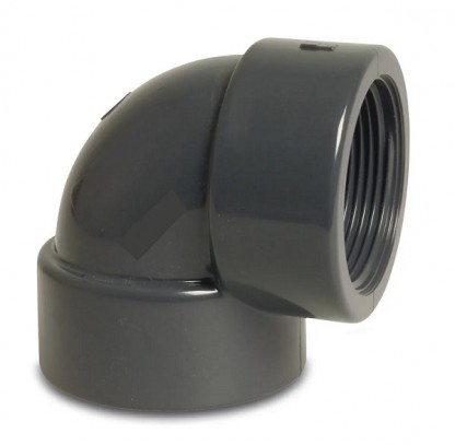 Böj 90° är gjord av PVC-U, reduktion och har en självhäftande hylsa x invändig gängad anslutning, för ett arbetstryck på 10 bar.Det används i industri, pooler och jordbruksprodukter för pumpning, bevattning och djurfoder.