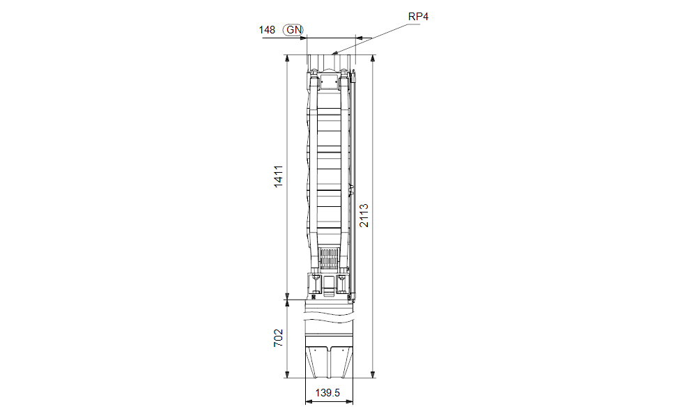 - Dränkbar borrhålspump, lämplig för pumpning av rent vatten. Kan installeras vertikalt eller horisontellt.