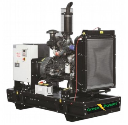 Greenpower Elverk med vattenkyld dieselmotor av FPT IVECO Elverk. Levereras med stabilt ramverk och Greenpower elektropanel, voltmätare, frekvensmätare, amperemätare, timmätare, startnyckel och indikationspanel för olja, batteriladdning och låg bränslenivå.