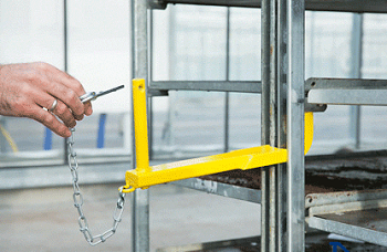 Med ECC21 kan du enkelt koppla två DC- eller CC-behållare bredvid varandra. Kopplaren har en hitch med 15mm i diameter så att den kan kopplas till auktionvagnar. ECC21 kan anslutas till arbetsnivån till inläggen, så det är också väldigt användbart när du måste flytta dem runt manuellt.